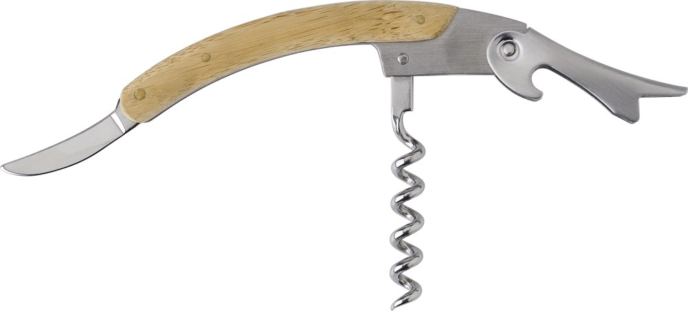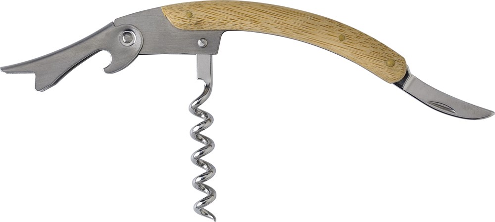 Bamboe en roestvrijstalen kelnermes met drie functies.