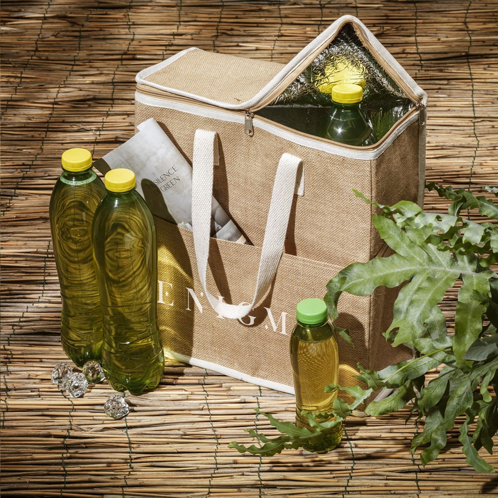 Koeltas in een materiaalcombinatie van stevig jute en katoen. Met ritssluiting en isolerende binnenzijde. In deze zeer ruime koeltas houd je eten en drinken koel tijdens een dagje weg. Deze tas heeft een extra opbergvak met rits aan de zijkant. Handig voor het opbergen van spullen die niet gekoeld hoeven te worden zoals je telefoon of portemonnee. Met geweven, katoenen hengsels. Inhoud ca. 24 liter.