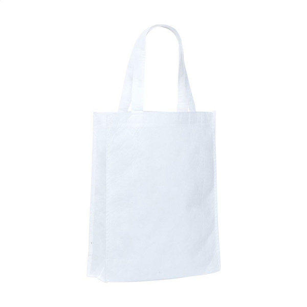 Boodschappentas die vanzelf oplost in water. De tas is gemaakt van Polyvinyl, ook wel PVA genoemd PVA kan gemakkelijk in water oplossen en is biologisch afbreekbaar. In warm water zelfs binnen een paar seconden. De tas is binnen 6 maanden verdwenen als hij bijvoorbeeld in de oceaan is belandt. (Afhankelijk van watertemperatuur, turbulentie, zoutgehalte etc.) Je kan gewoon met de tas in de regen lopen want hij lost alleen op als hij permanent in het water ligt of ondergedompeld wordt. Inhoud ca. 3 liter. De samenstelling van polyvinylalcohol is CH2-CH-OH en splitst zich bij het oplossen in water (H2O) en koolstof (C). Koolstof is geen gas en zal daarom ook niet als broeikasgas de lucht ingaan.