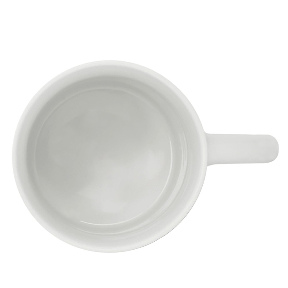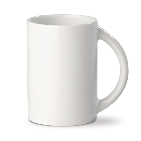 Hoogwaardige porseleinen witte mok geproduceerd in Europa. Hoog en slank model met groot oor.