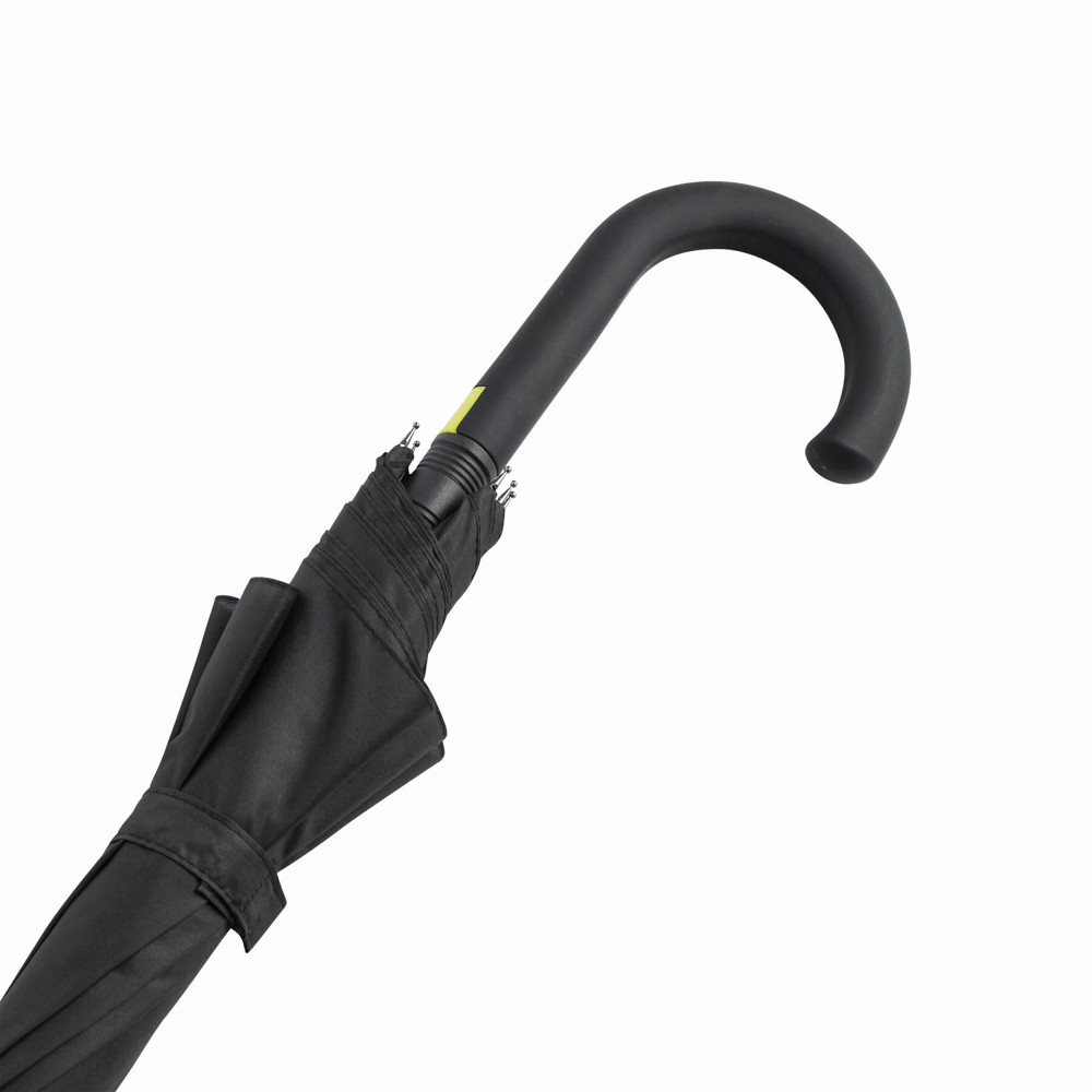 Automatisch te openen paraplu CANCAN; met metalen steel en glasfiber baleinen in dezelfde kleur, rubber coated gebogen handvat en polyester-pongee bespanning.
