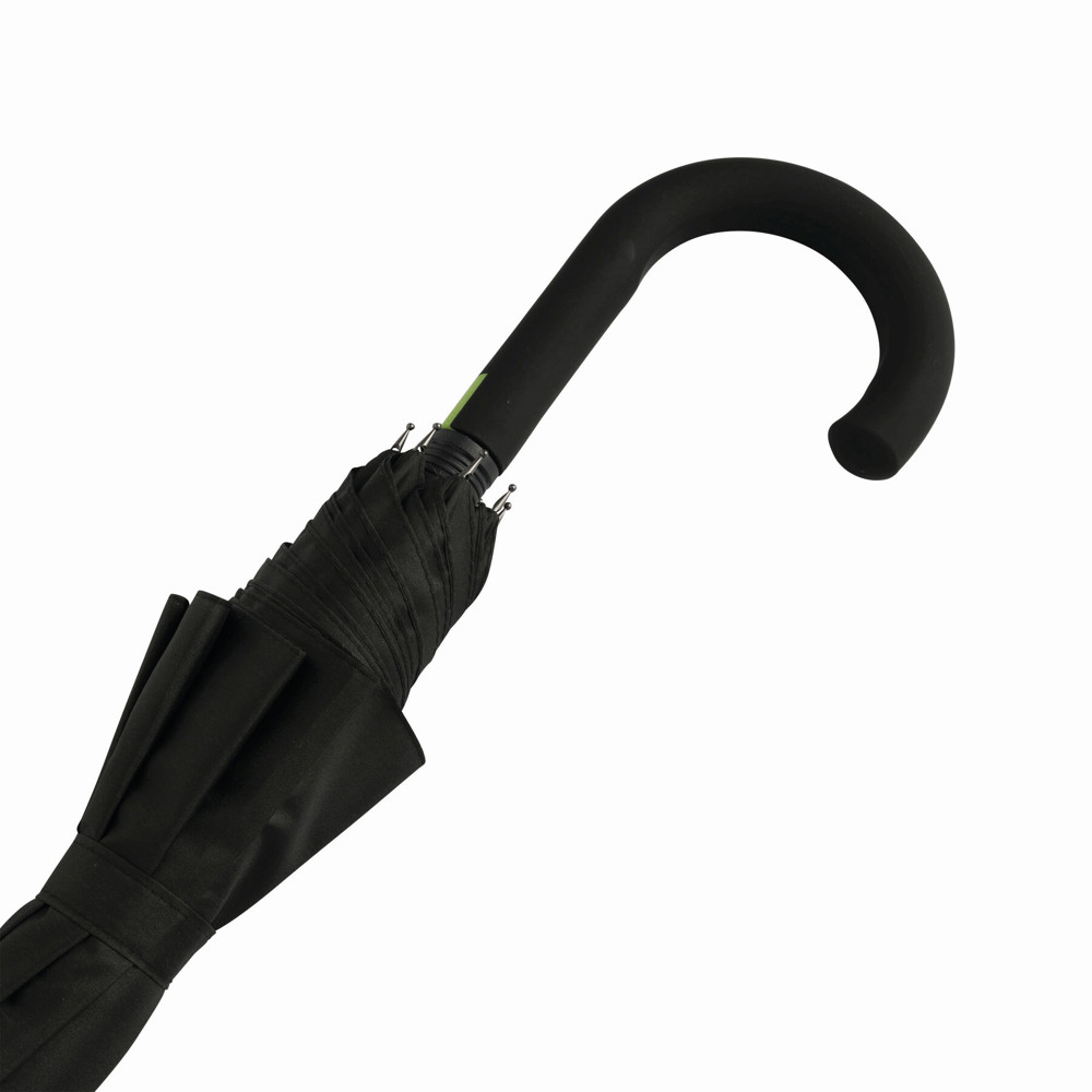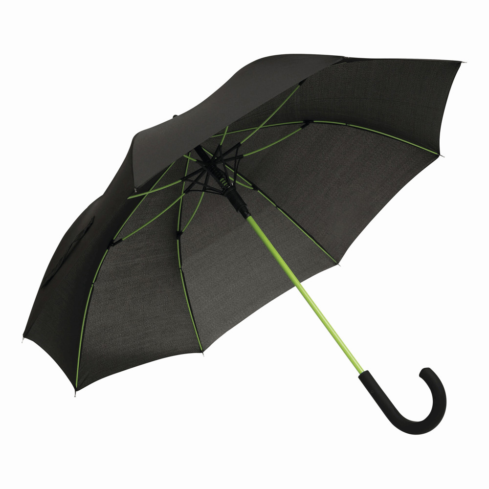 Automatisch te openen paraplu CANCAN; met metalen steel en glasfiber baleinen in dezelfde kleur, rubber coated gebogen handvat en polyester-pongee bespanning.