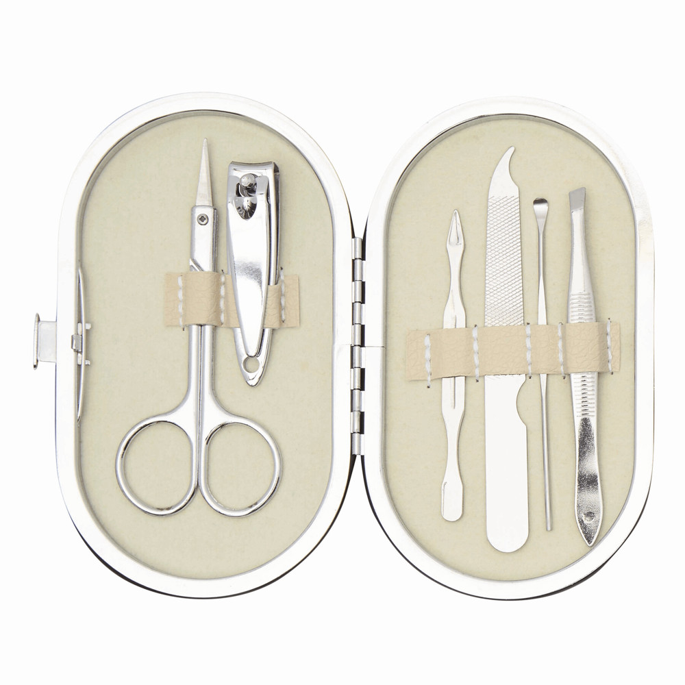 6-delige manicure set DENISE in luxe ovaal vormige houder met metalen sluiting.