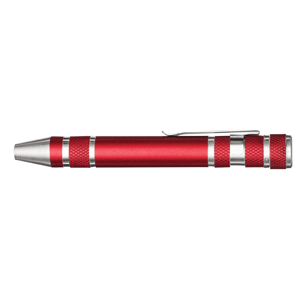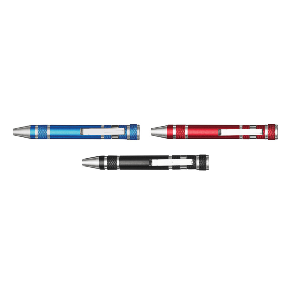 Magnetische schroevendraaier MICRO in een combinatie van metaal en aluminium met 8 geïntegreerde bitjes. Verpakt in giftbox.