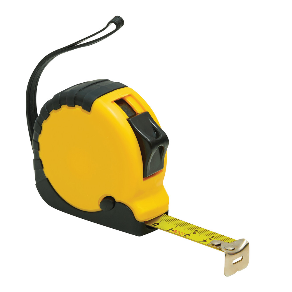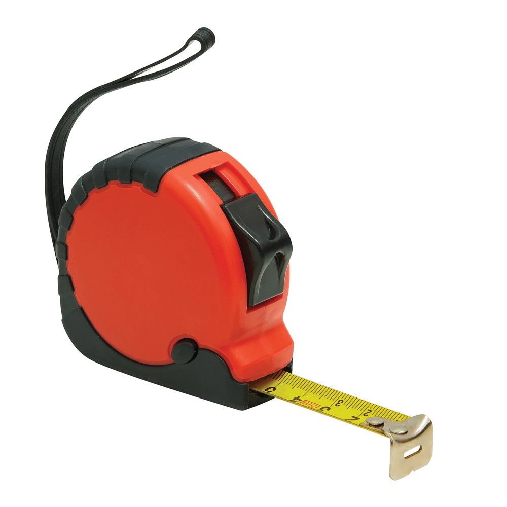 5-mtr rolbandmaat ELEMENTAL II in rubberen houder met automatische oprolfunctie, stopper, riemclip en draagband.