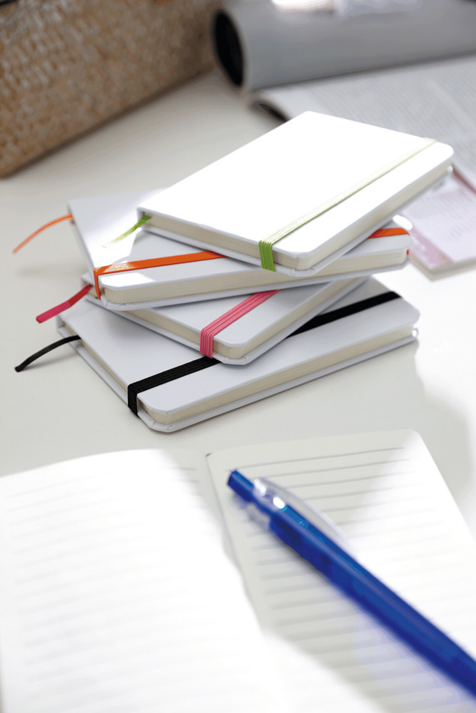 A5-notitieboekje AUTHOR met gekleurde- elastische bladwijzer. 80 vel, gelinieert, 70gr/m².