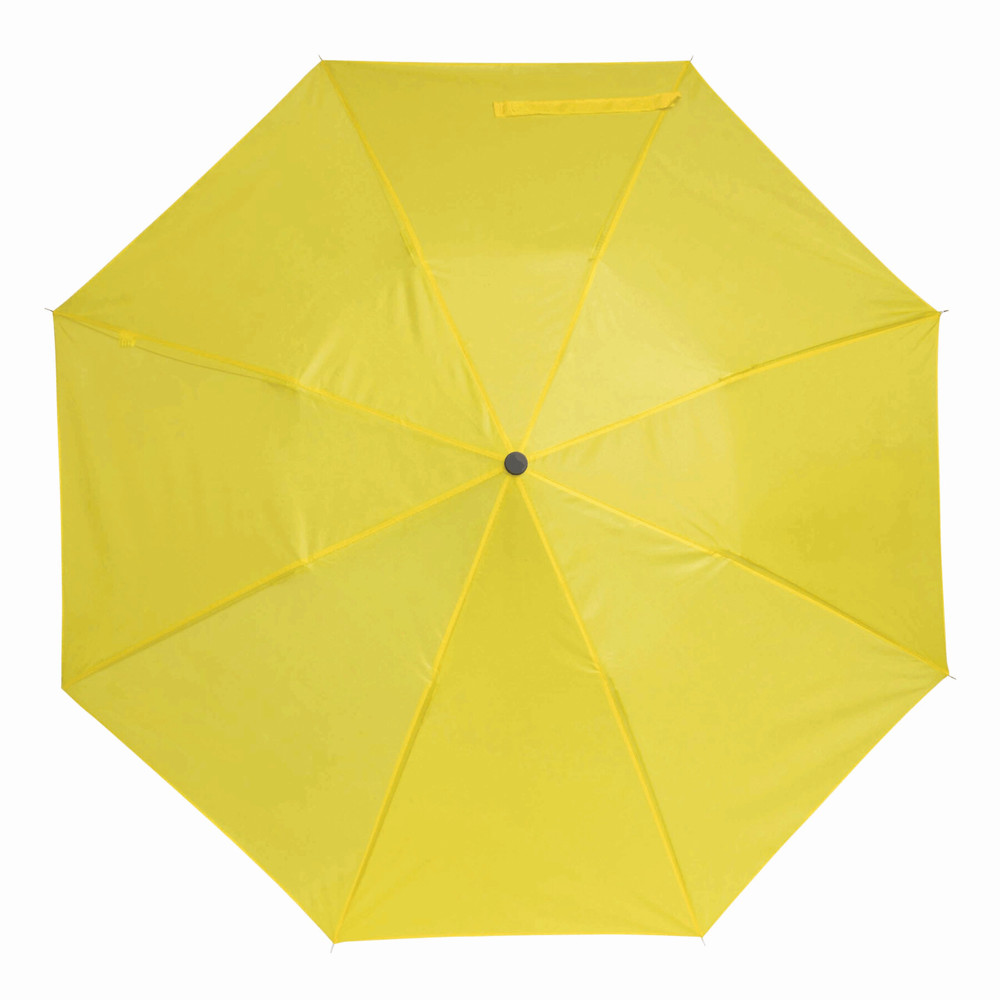 Opvouwbare, uit 2 secties bestaande manueel te openen paraplu REGULAR met metalen steel en baleinen, opberghoesje, kunststof handvat en polyester cover en klittenbandsluiting.