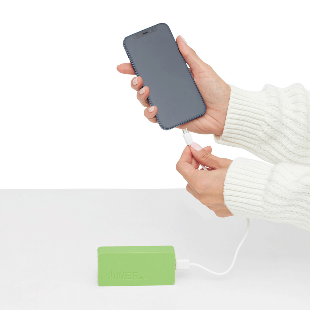 Powerbank TOP ENERGY incl kabel (ca 30cm) met micro usb-stekker. Input en output: 5V/ 1 A, capaciteit: 4.000 mAh.