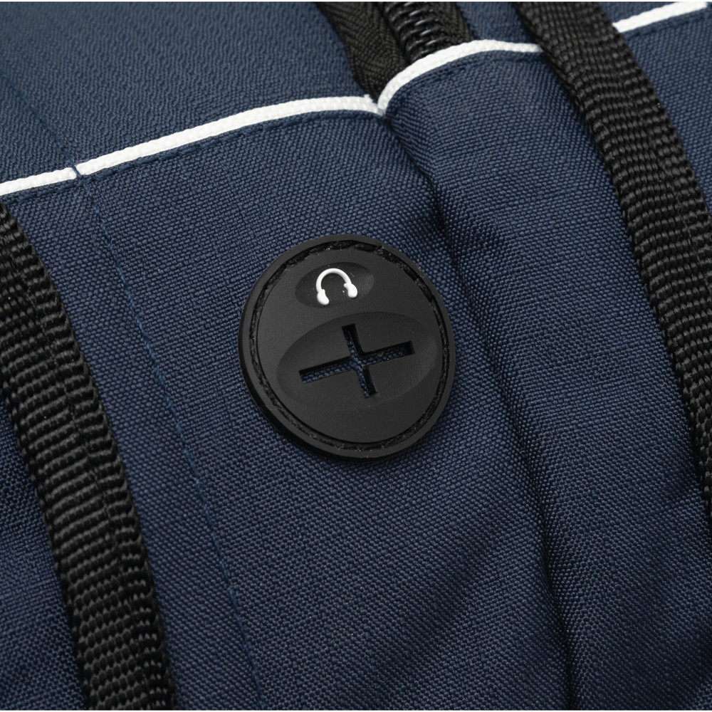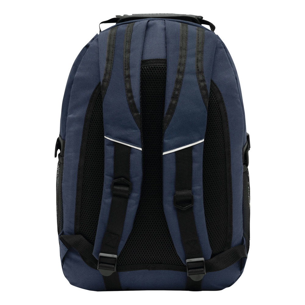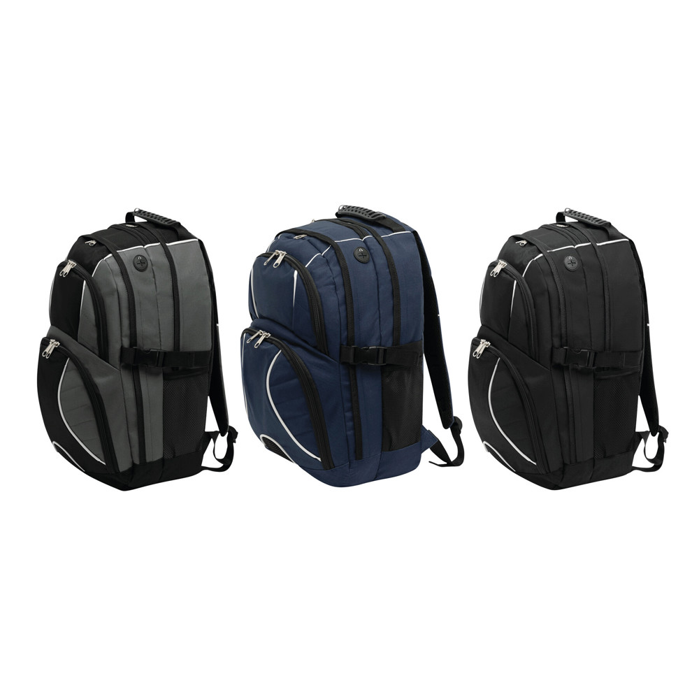Luxe polyester rugzak/ laptoptas HYPE met meerdere, dmv een rits afsluitbare, vakken waaronder een gepolsterd laptopvak en een gepolsterd vak met kabeluitgang. De schouderbanden zijn gepolsterd en de draaggreep is extra verstevigd.