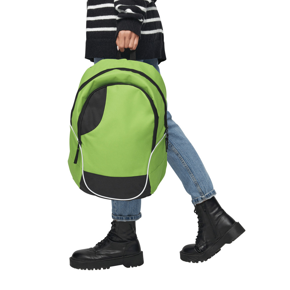 Rugzak CURVE van 600D polyester met gevoerde schouderbanden, handvat en diverse afsluitbare vakken.