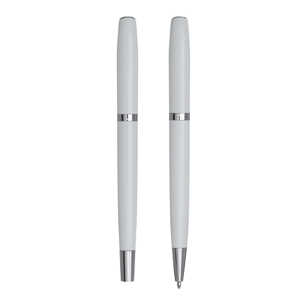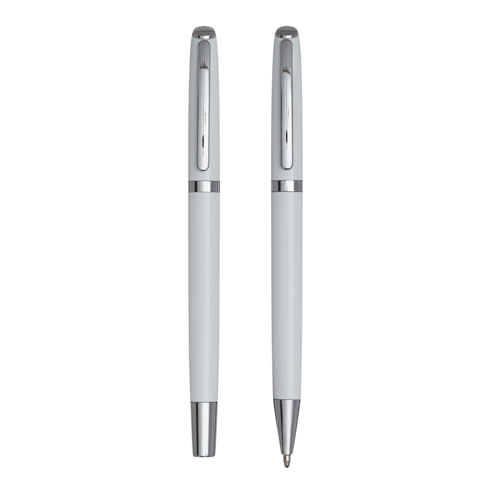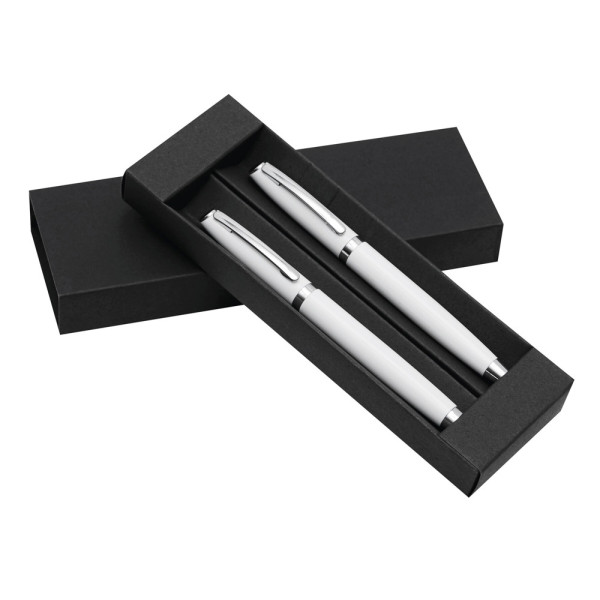 Pennenset ALPHABET bestaande uit een zwartschrijvende balpen en rollerball. Samen verpakt in een geschenkbox.