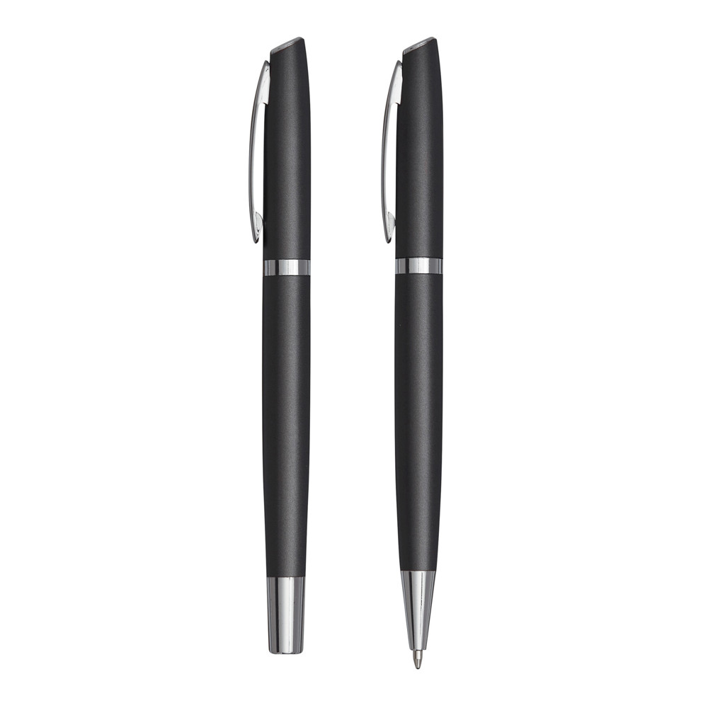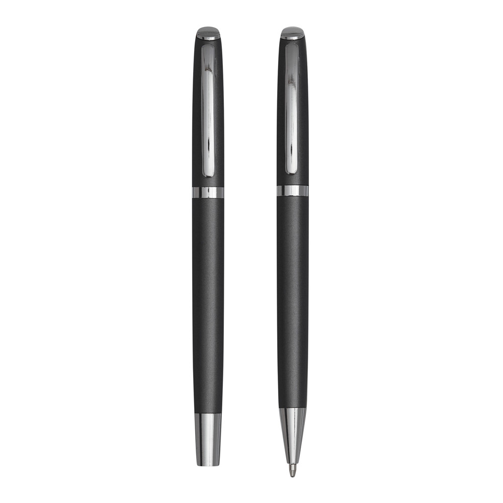 Pennenset ALPHABET bestaande uit een zwartschrijvende balpen en rollerball. Samen verpakt in een geschenkbox.