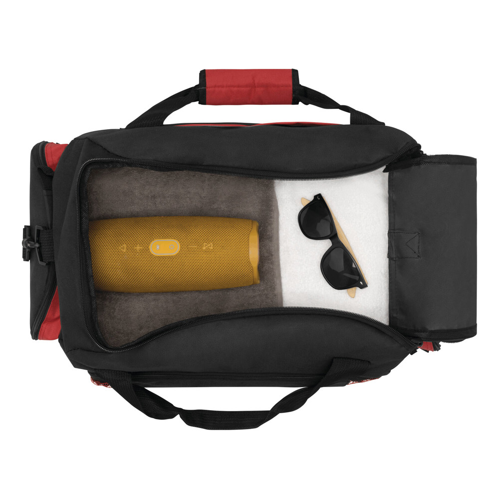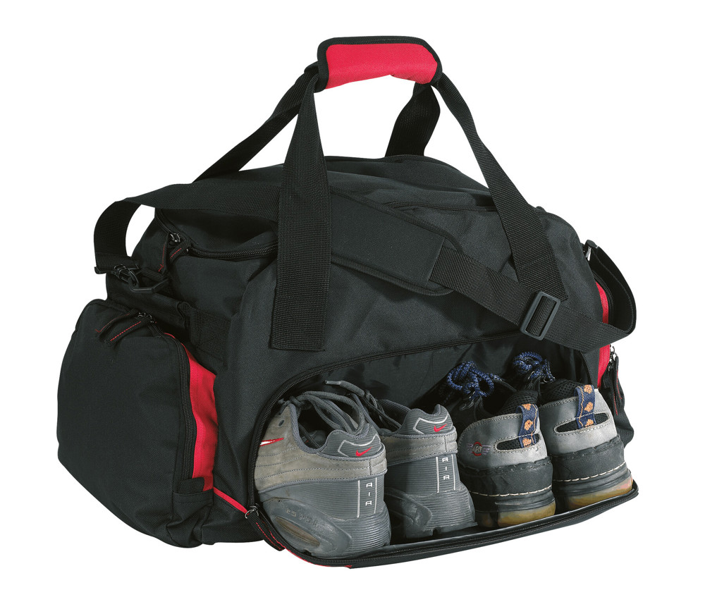 600D polyester sporttas DOME met luxe verstelbare schouderband, afsluitbare zijvakken en een groot schoenenvak.
