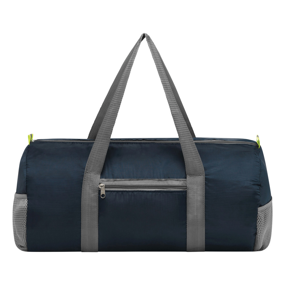 Opvouwbare sporttas VOLUNTEER GYM; hoofd- en voorvak met ritssluiting, 2 reflecterende labels, 2 netvakken en 2 draagbanden. Eenvoudig en klein opvouwbaar.