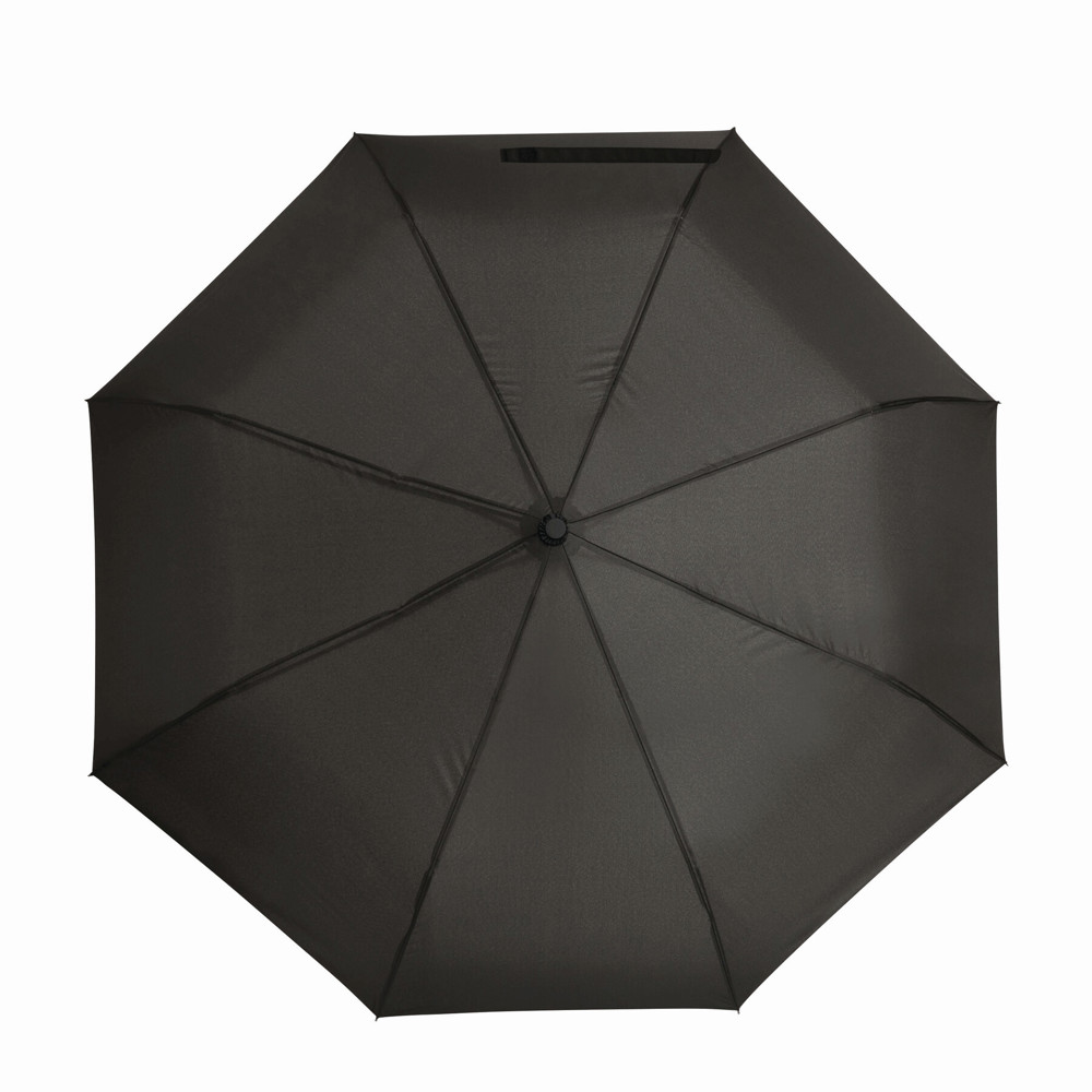 Automatische opvouwbare paraplu LORD met metalen, uit 3 secties bestaande, steel, metalen/ fiberglas baleinen, tips van metaal, houten gebogen handvat en een polyester-pongee cover met waterafstotende coating. Sluiting dmv klittenband.