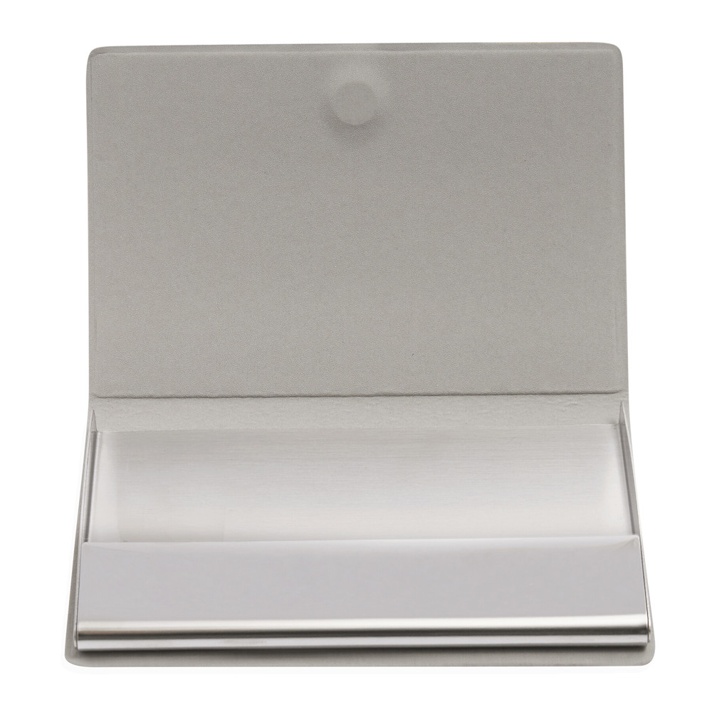Visitekaarthouder ATLAS met metalen plaatje voor plaatsen van een logo en magnetische sluiting.