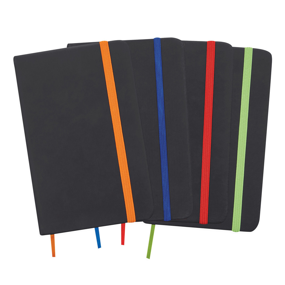 Notitieboekje LECTOR in A6 formaat met afgeronde hoeken: gekleurde sluitband en gekleurde...meer