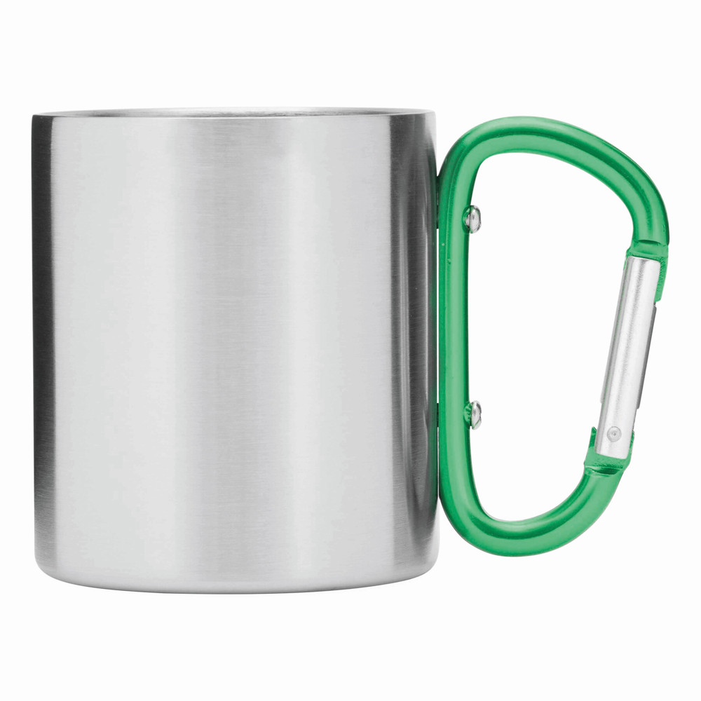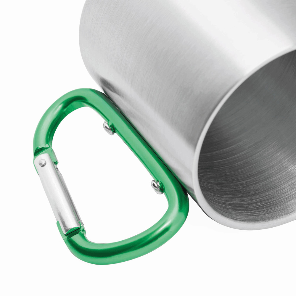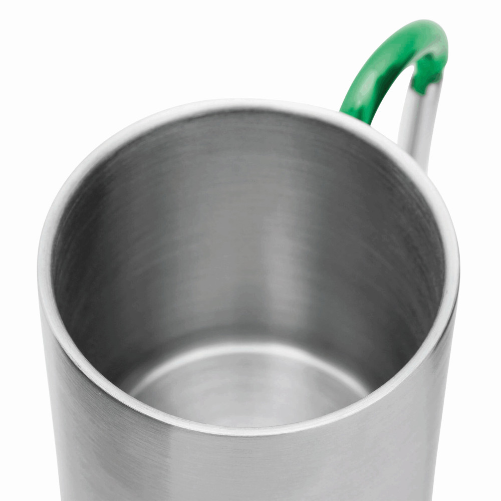 RVS-beker HIKING DAY, dubbelwandig, inhoud ca. 220 ml., met gekleurde karabijnhaak.