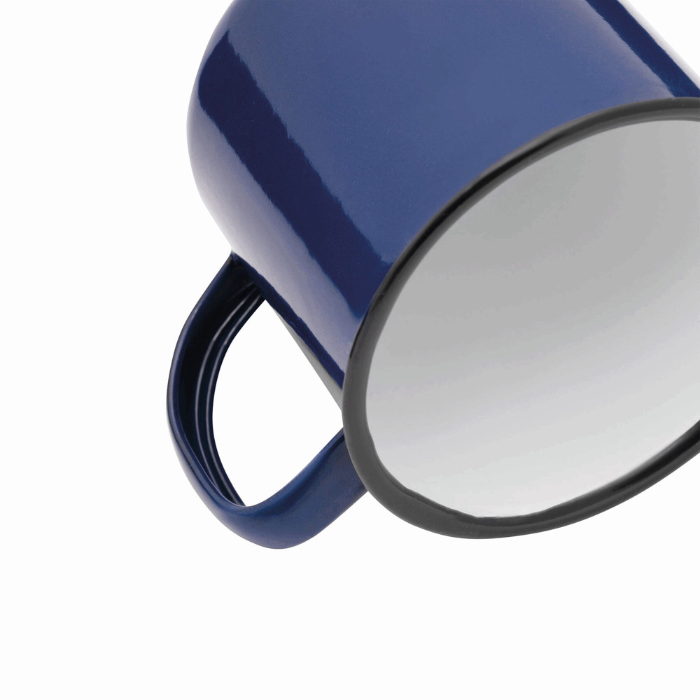 Emaille beker RETRO CUP, met oor, buitenkant gekleurd en binnenin wit, inhoud ca. 350 ml., imperfect finish