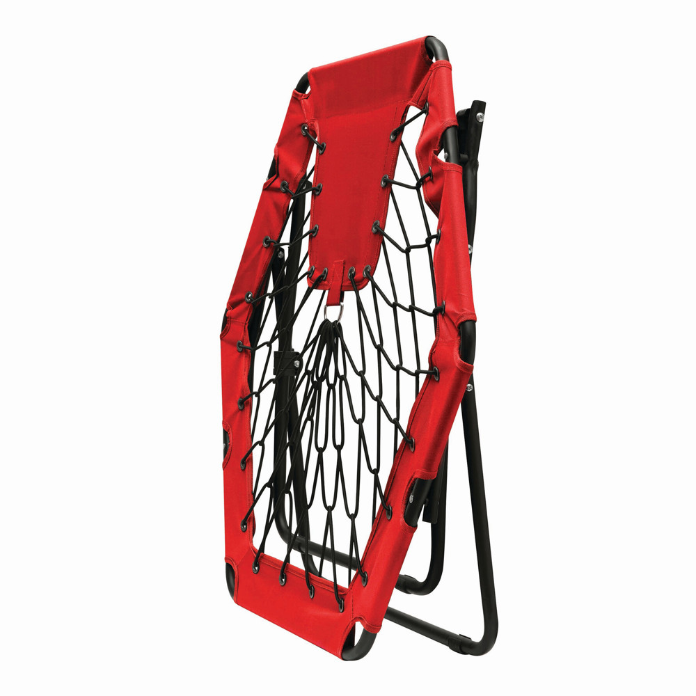 Bungee-stoel CHILL OUT: comfortabel zitoppervlak van elastisch touw, stabiel stalen frame met uitklapbare poten