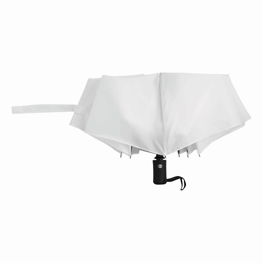 Volautomatische windproof pocket paraplu. PLOPP in bijpassende hoes: 3-delige metalen steel, met metalen /fiberglas baleinen met metalen tips, een rubberen handvat met draagriempje, doek van polyester, met een sluitbandje met klittenband