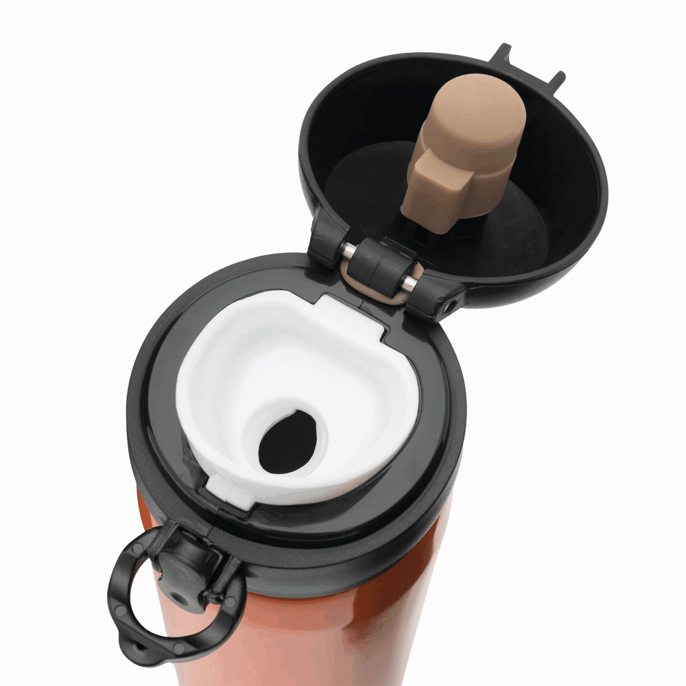 Vacuüm drinkfles OOLONG: dubbelwandig, binnen- en buitenkant van RVS, met tuit en met schroefdop, met drukknop voor een verzekerde sluiting, inhoud ca. 400 ml.