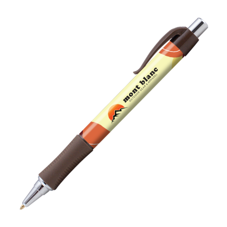 De KEA balpen is een opvallende pen met een gripzone en zilverkleurig beslag, die volledig (all over) bedrukt kan worden in full colour via 360° digitaaldruk/folietransferdruk.