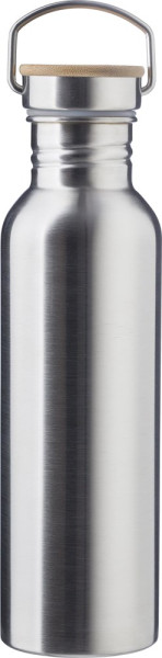 RVS (s/s304) enkelwandige drinkfles (700 ml) met bamboe schroefdop.
