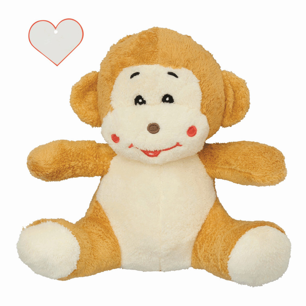 Pluche aap ELIAS: met zachte vacht, met aangehecht hartje voor bedrukking - Made in Europe