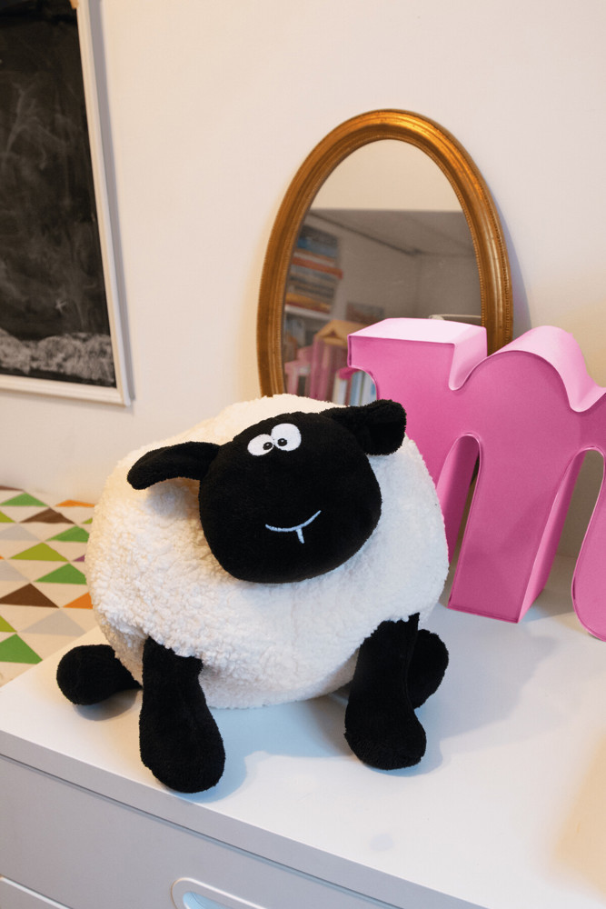 Grote pluche schaap SAMIRA: met zachte vacht, met aangehecht hartje voor bedrukking - Made in Europemeer