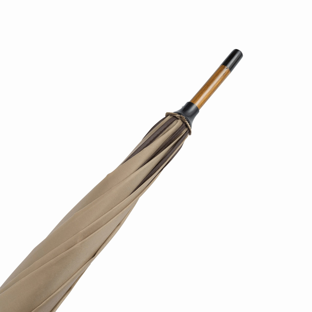Automatisch te openen paraplu WALTZ met houten steel, gebogen houten handvat en geaccentueerde polyester segmenten.