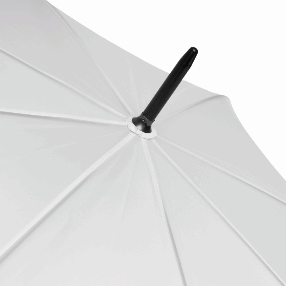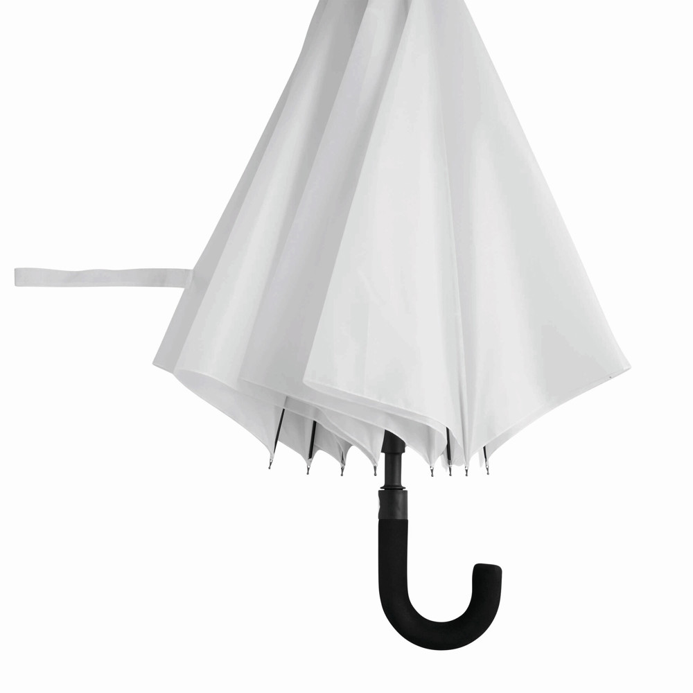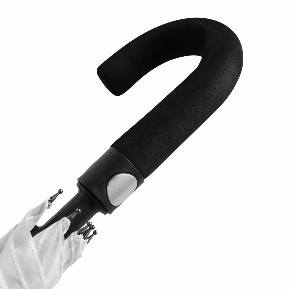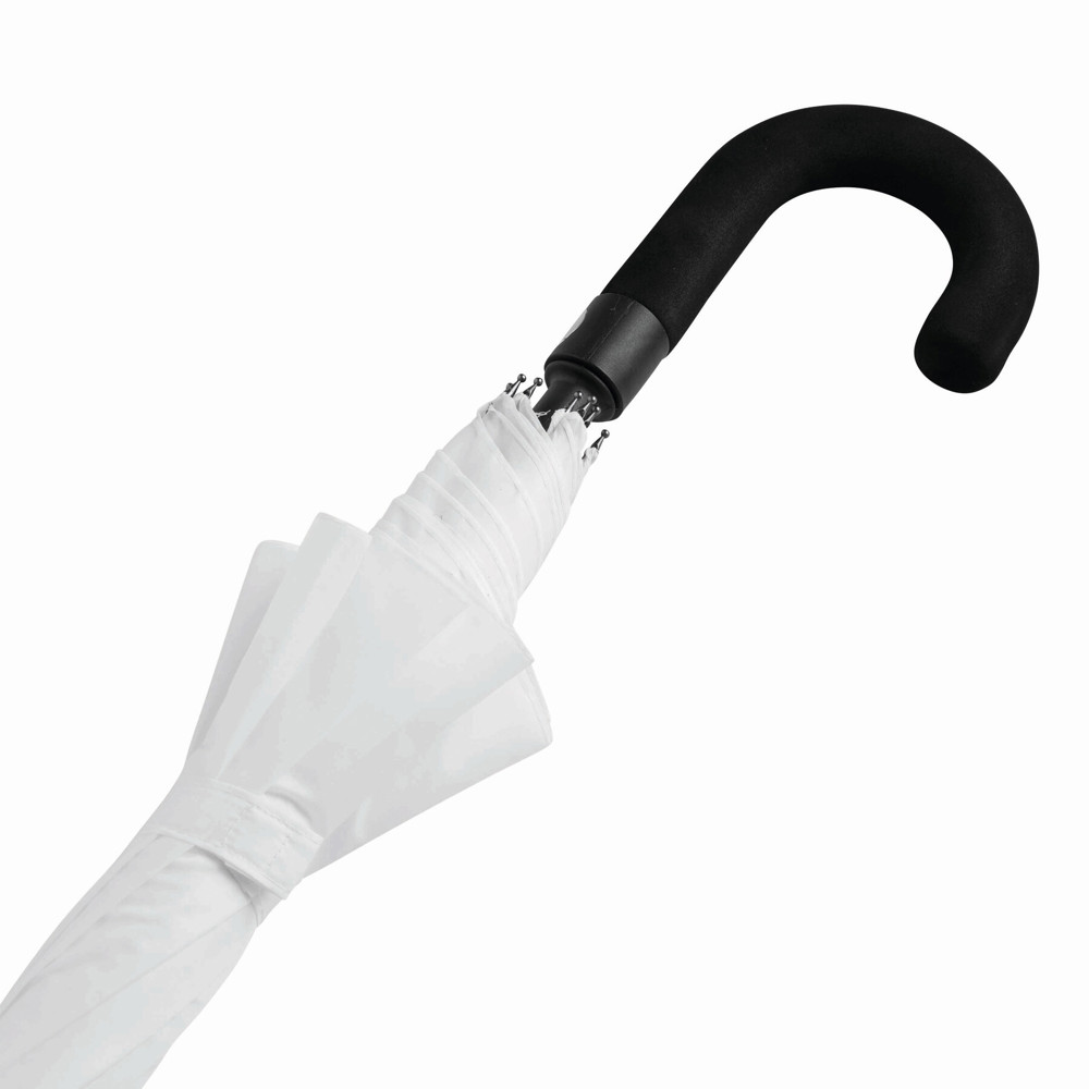 Automatische golfparaplu SUBWAY met zwarte metalen steel, baleinen en tips, zwart gebogen EVA handvat klittenband sluiting en polyester-pongee cover met waterafstotende coating.