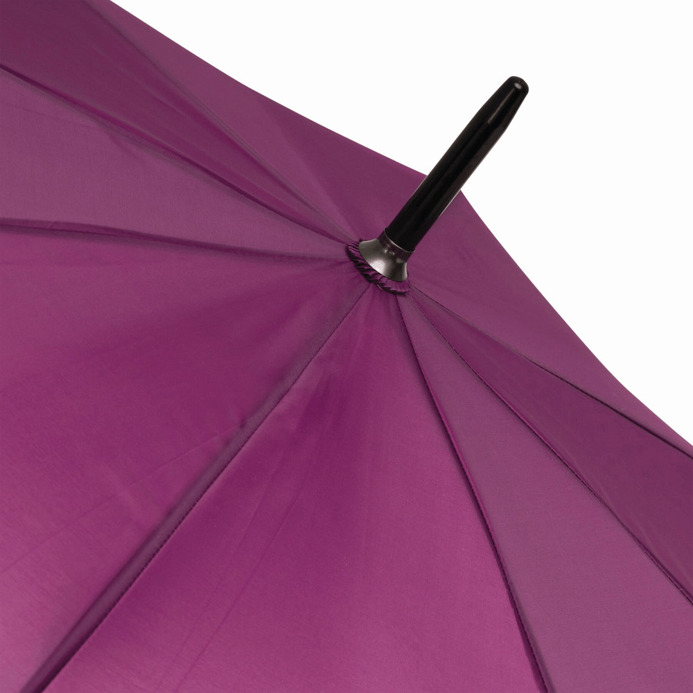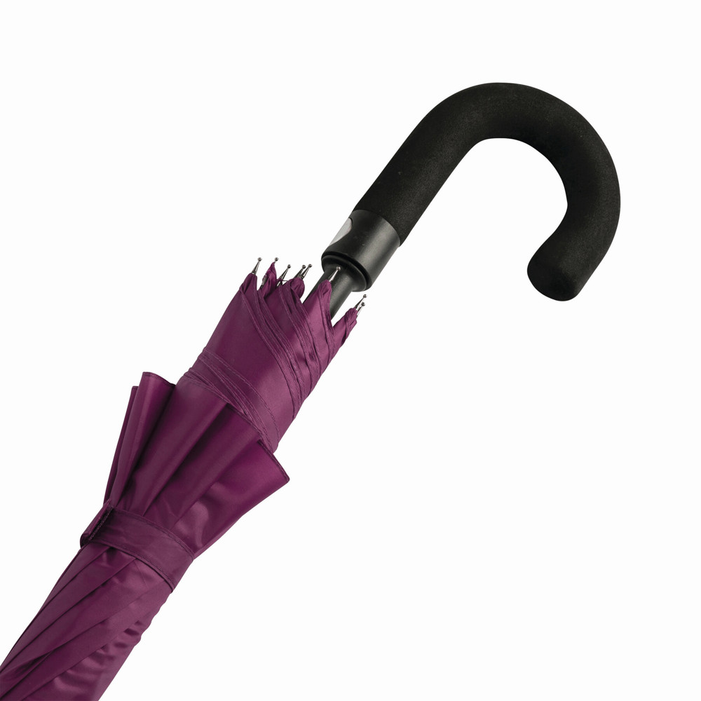 Automatische golfparaplu SUBWAY met zwarte metalen steel, baleinen en tips, zwart gebogen EVA handvat klittenband sluiting en polyester-pongee cover met waterafstotende coating.