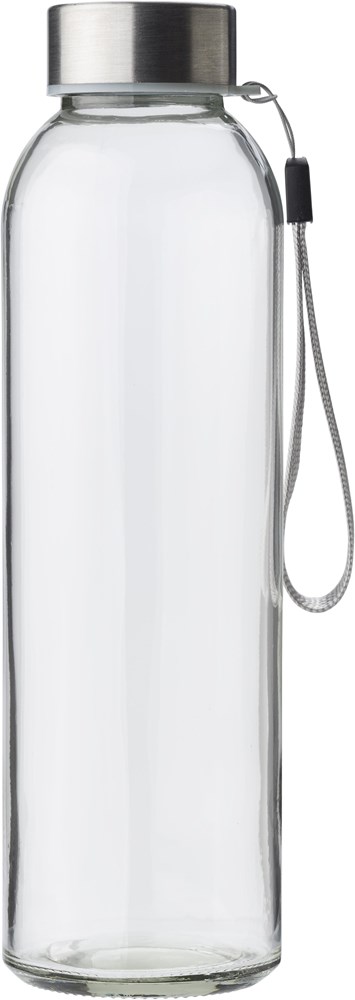 Glazen fles (500 ml) met neopreen hoes. De metalen dop is voorzien van een polsband. Uitsluitend voor koude dranken.