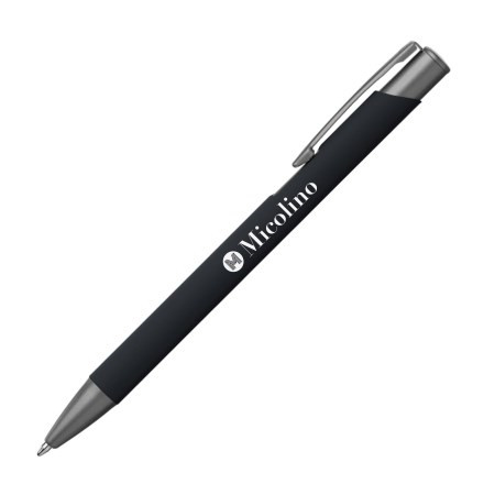 De MAIO GUNmetal balpen soft touch is een hoogwaardige pen met soft touch afwerking en gunmetal accenten, en is te personaliseren met lasergravering.