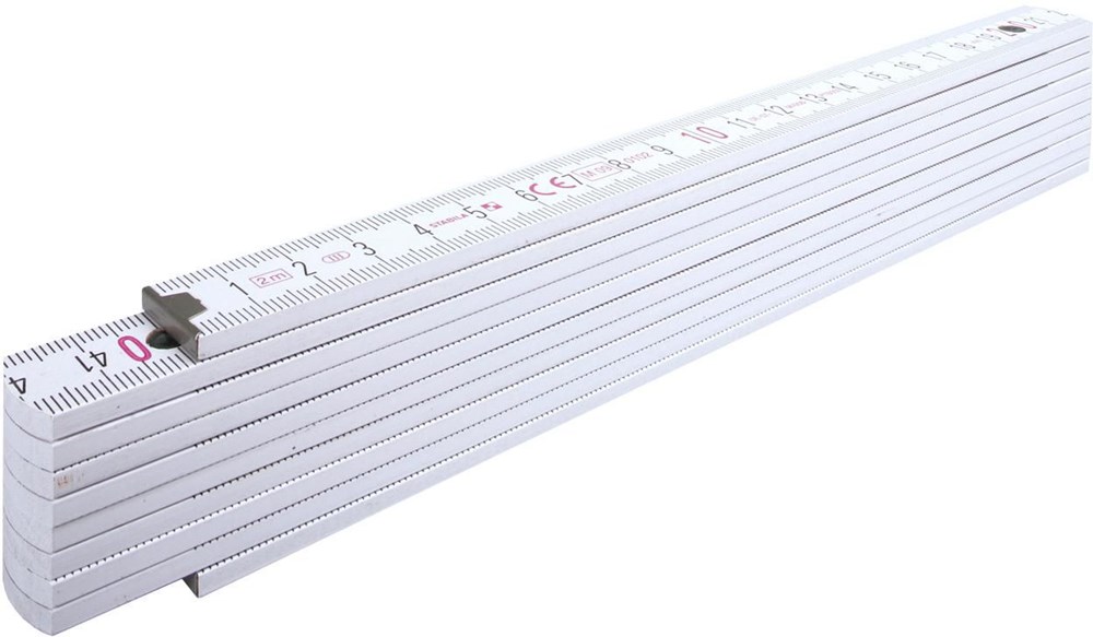 Houten Stabila duimstok met een totale lengte van 2 meter. Schaal is in cm. De liniaal heeft een schokbestendige coating en extra sterke, roestvrijstalen scharnieren. Met geïntegreerd hoekschema. PEFC certificaat, nauwkeurigheidsklasse 3.