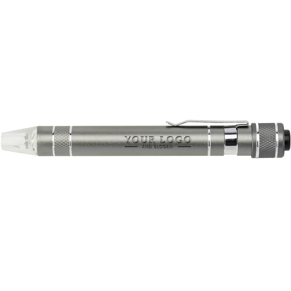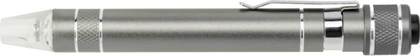 Aluminium schroevendraaierset in de vorm van een pen met lamp in de punt. Incl. 6 bitjes en incl....meer