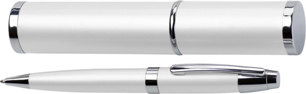 Metalen balpen, zwartschrijvend, met zilverkleurige accessoires, verpakt in een luxe koker. Prijs...meer