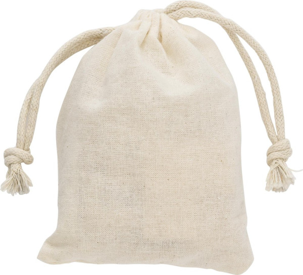 Houten educatieve spelset met 32 onderdelen. Verpakt in een katoenen trekkoordzakje.