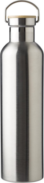 RVS fles (1 L), dubbelwandig met draagdeksel en bamboe details. Warme drank blijven tot 12 uur warm, koude dranken blijven tot 18 uur koud.
