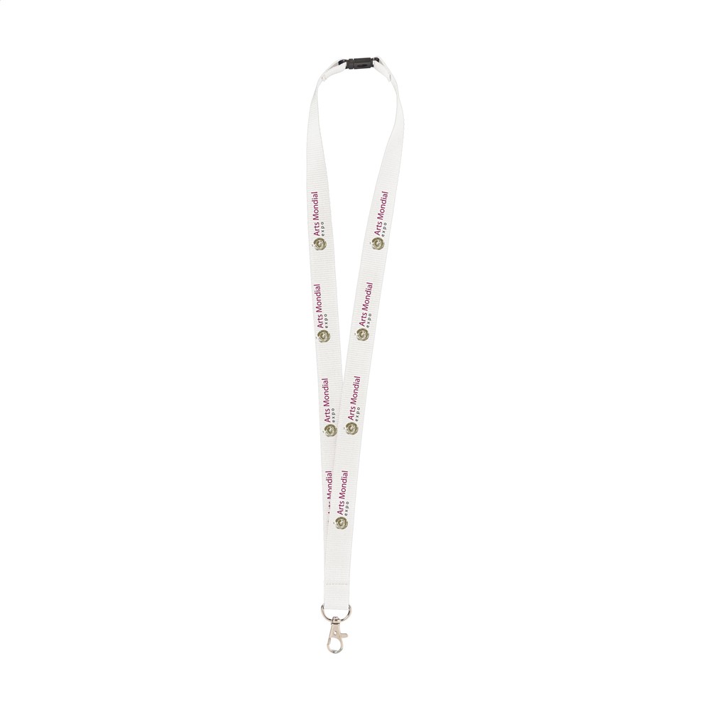 Polyester lanyard met metalen karabijnhaak en veiligheidssluiting.meer