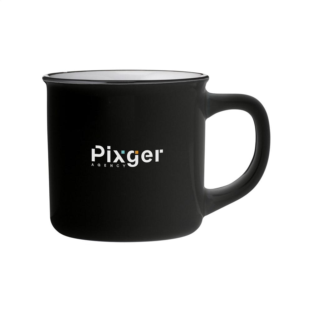 Keramische kwaliteitsmok in populaire retrostijl. Inhoud 320 ml. Vaatwasserbestendig. De opdruk is vaatwasmachine getest en gecertificeerd: EN 12875-2.