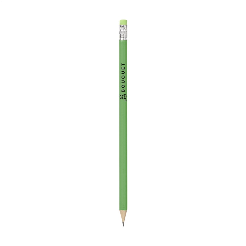 Geslepen, houten (HB) potlood met gum.