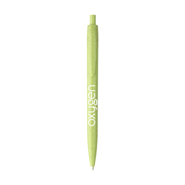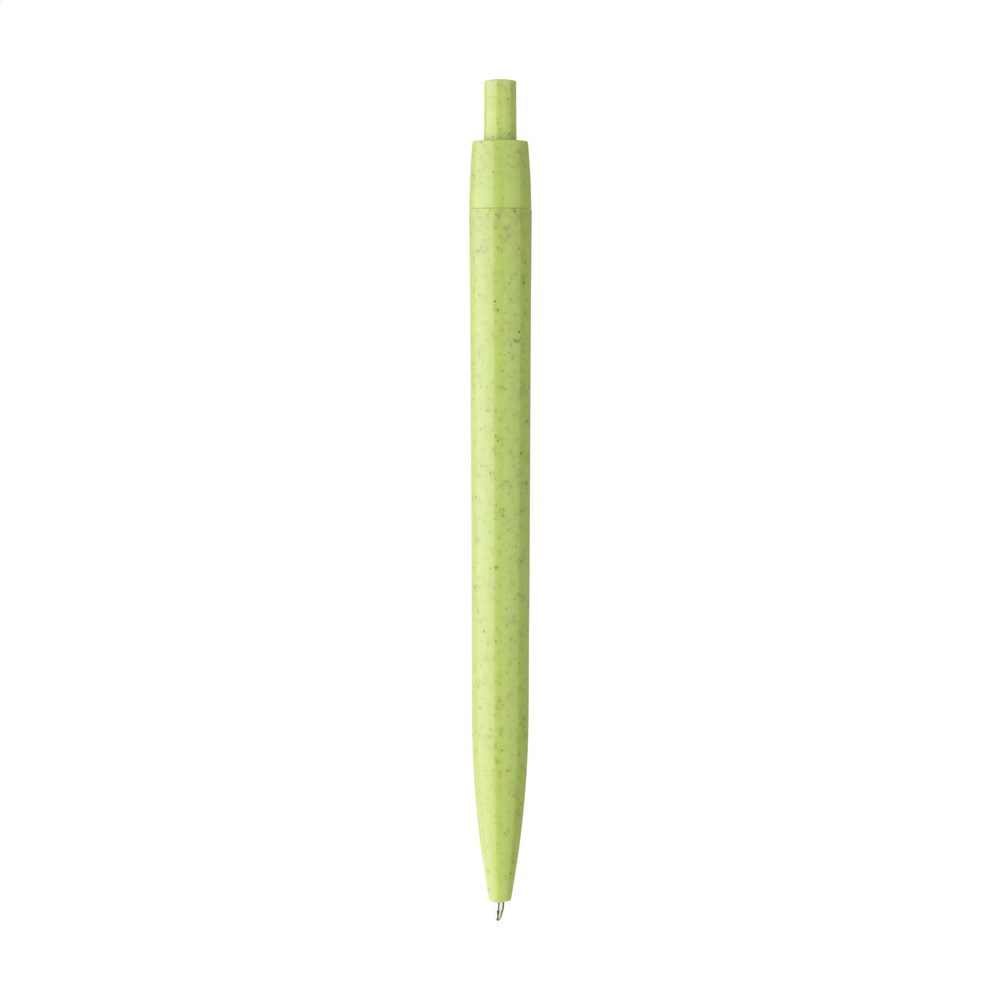 Blauwschrijvende balpen gemaakt van 60% tarwestro en 40% kunststof. De houder, clip en drukknop zijn gemaakt van hetzelfde materiaal en de gehele pen is stijlvol uitgevoerd in één kleur.