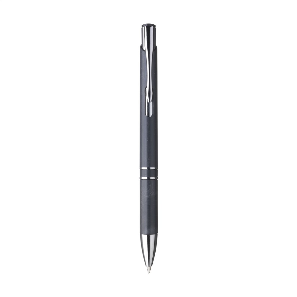 Blauwschrijvende balpen met houder van 50% ABS en 50% tarwestro, metalen clip en kunststof chrome accenten.