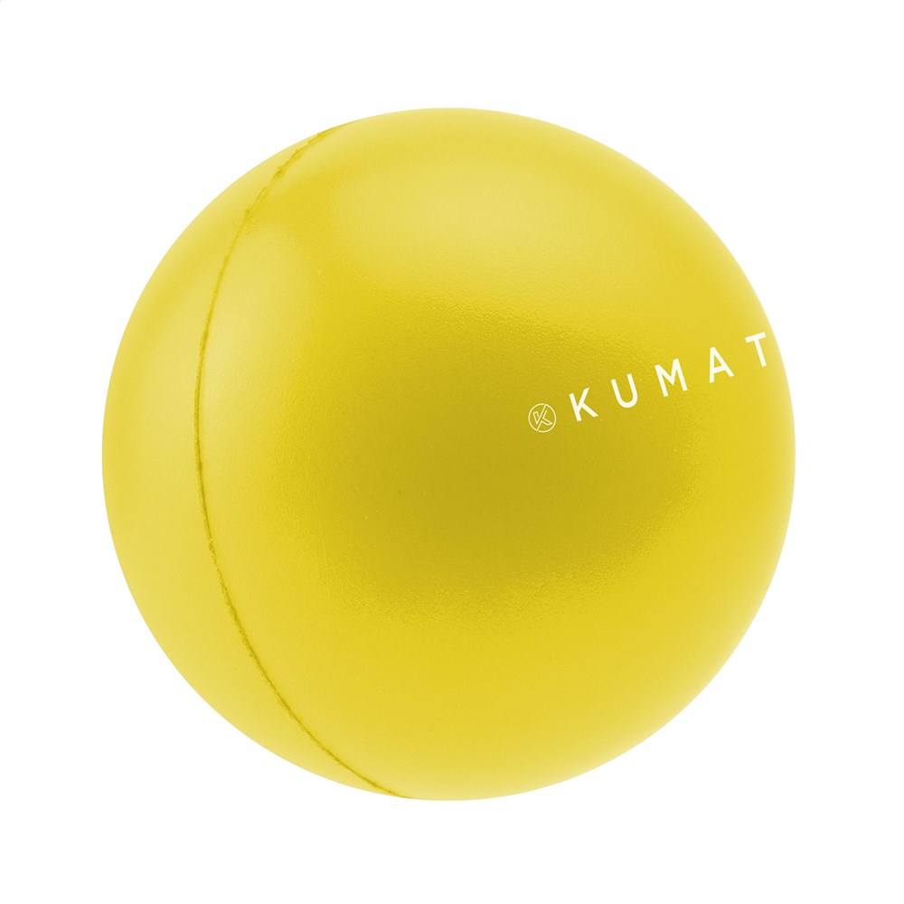 Anti-stressbal van zacht, kneedbaar foammateriaal. Bij stressballen kunnen kleine variaties voorkomen in dichtheid, kleur, afmetingen en gewicht die effect kunnen hebben op precisie en uniformiteit van de bedrukking, die ook kan breken.