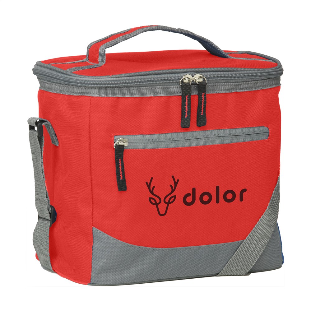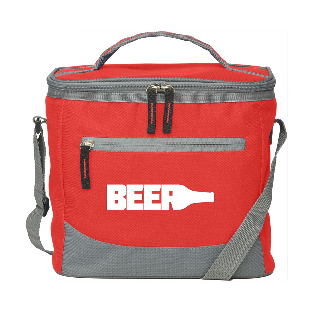 Handig formaat koeltas van geweven 600D polyester. Met ruim koelvak, ritsvak aan de voorzijde, handgreep en verstelbare schouderriem. Geschikt voor 12 blikjes drank. Inhoud ca 10 liter.
