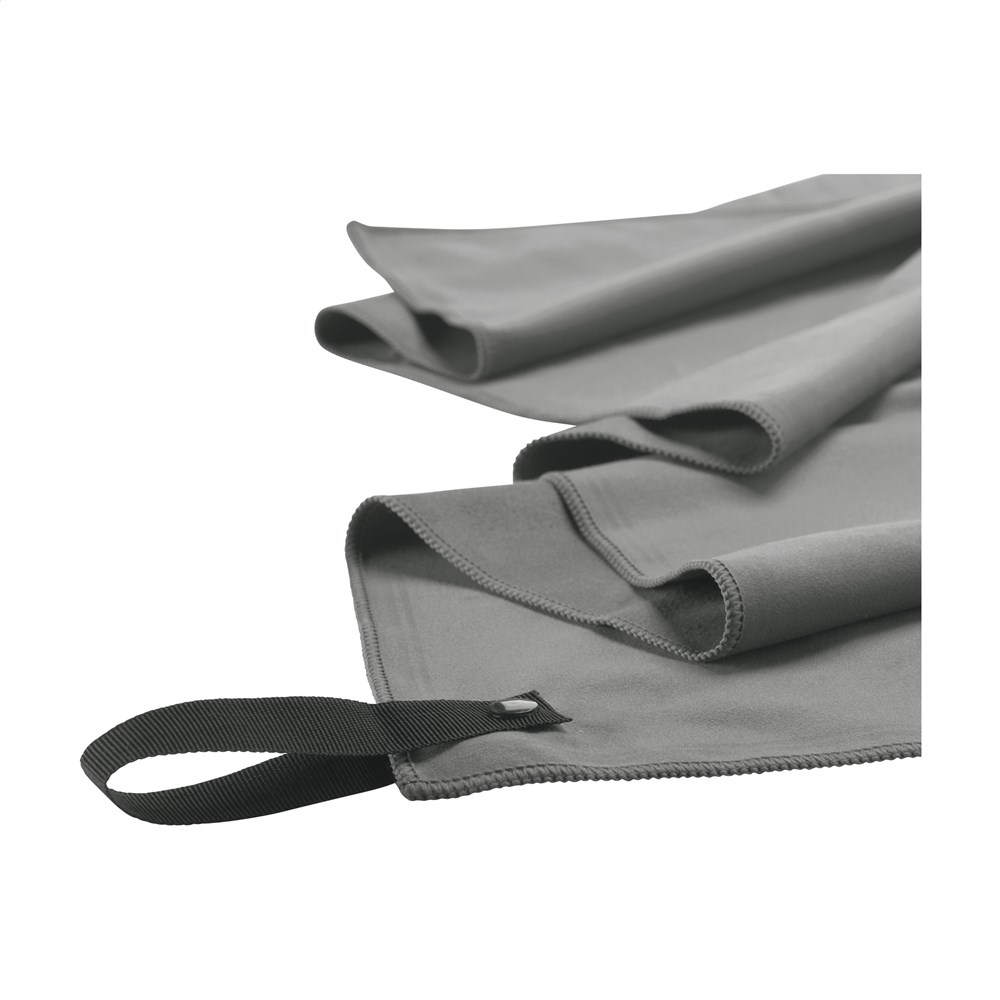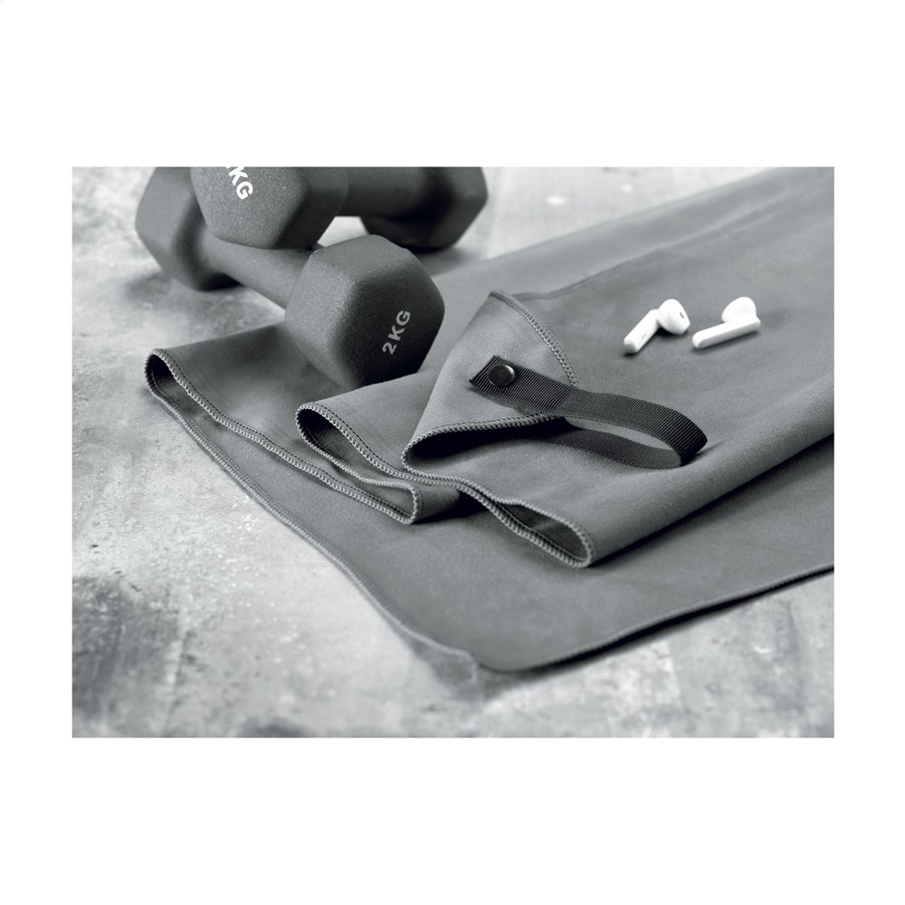 Praktische microvezelhanddoek (100 x 50 cm) van 80% microvezel en 20% polyamide. Deze sporthanddoek is zeer licht in gewicht, heeft een uitstekend absorptievermogen, voelt comfortabel zacht aan en droogt zeer snel. Met ophanglus. Geleverd in een handige pouch (afm 17,5 x 13,3 cm). Ideaal voor gebruik tijdens en na een intense sportsessie.