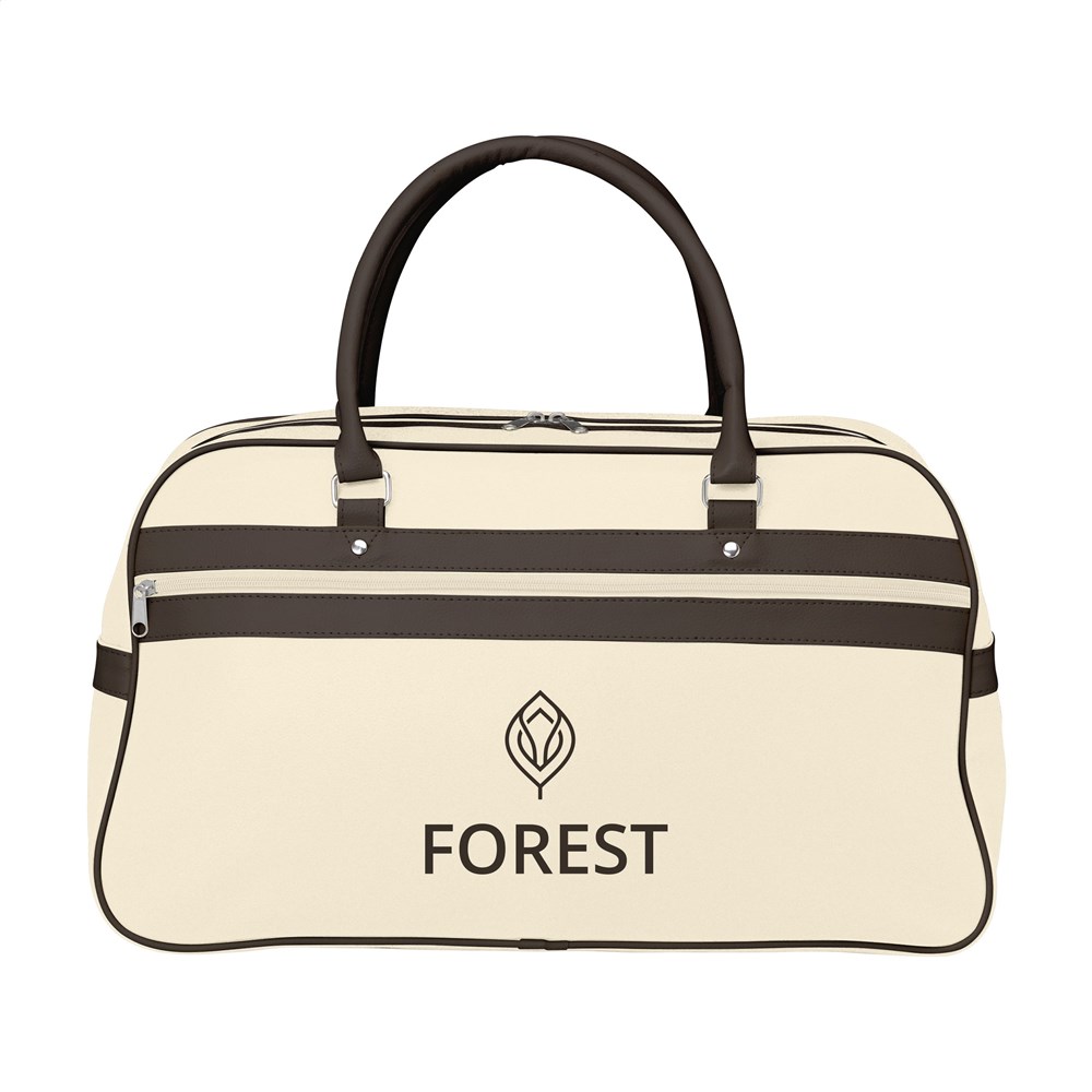 PVC/PU sporttas in jaren '70 look met gevoerde binnenzijde, hoofdvak en ritsvak, 2 stevige handgrepen, inlegbodem en beschermnoppen. Afgewerkt met hoogwaardige materialen die een lange levensduur garanderen. Inhoud ca. 21,5 liter.