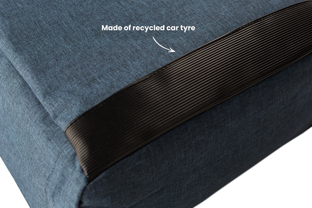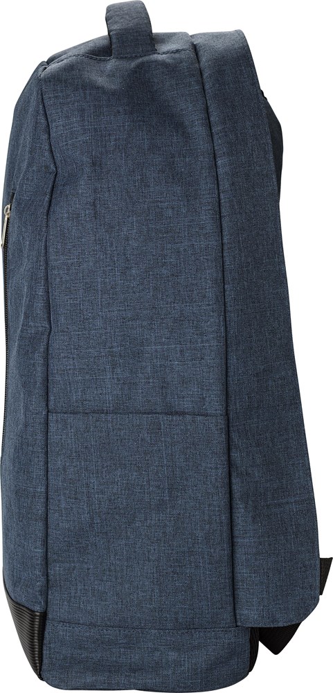 Polyester rPET (600D) rugzak (15 inch) met antidiefstalfunctie. Klein vakje aan de voor- en achterkant, vakjes voor flessen aan de zijkant, trollyband, laptopvak met klittenbandsluiting en verstelbare bandjes. De details aan de onderkant zijn gemaakt van gerecyclede autobanden.